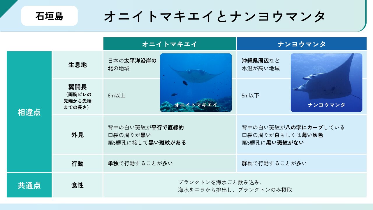 オニイトマキエイとナンヨウマンタの違いはこちらの通りです。